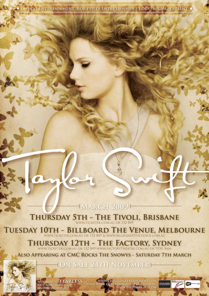 Taylor Alison Swift (sinh ngày 13 tháng 12 năm 1989)là một ca sĩ nhạc đồng quê và pop người Mỹ. Cô kí hợp đồng với hãng đĩa Big Machine Records năm 2006 và ra mắt đĩa đơn đầu tay Tim McGraw. Bài hát này đã xếp hạng #6 trên bảng xếp hạng nhạc đồng quê của Billboard. Sau đó Taylor đã phát hành album đầu tiên mang chính tên cô vào cuối năm 2006 và phát hành lại vào năm 2007, đã nhận được 3 đĩa bạch kim bởi RIAA. Tiếp nối Tim McGraw là #2 Teardrops on my guitar, #1 trong 6 tuần Our song, #3 Picture to burn và một #1 nữa - Should've said know. Cả 5 đĩa đơn này đều nằm trong top 40 lại Billboard hot 100, cùng như là ca khúc Change trong AT&T TEAM USA Soundtrack. Album thứ 2 - Fearless, được phát hành vào ngày 11 tháng 11 năm 2008, và đĩa đơn mở đầu Love Story đã trở thành đĩa đơn đạt thứ hạng cao nhất tại Hot 100 của Taylor. Tờ New York Times miêu tả Taylor là "một trong những người sáng tác nhạc pop hay nhất, người theo chủ nghĩa thực tế đầu tiên của dòng nhạc đồng quê và liên hệ với đời tư của mình hơn nhiều người lớn khác". Theo Nielson SoundScan, với tổng lượng đĩa tiêu thụ hơn 4 triệu, Taylor là nghệ sĩ bán được nhiều album nhất năm 2008 ở Mỹ. Album Fearless của Taylor và album mang chính tên cô đã kết thúc năm 2008 lần lượt ở #3 và #6 với lượng tiêu thụ là 2.1 và 1.5 triệu. Đây là lần trong lịch sử của SoundScan, một nghệ sĩ có 2 album trong top 10 album của năm 2008. Fearless đã đứng đầu bảng xếp hạng Billboard 200 trong 11 tuần không liên tiếp. Không album nào có nhiều tuần ở vị trí số 1 như vậy kể từ năm 1999-2000. Theo Forbes 2009, Taylor Swift xếp thứ 69 trong những người nổi tiếng quyền lực nhất với thu nhập $18 triệu trong năm nay.