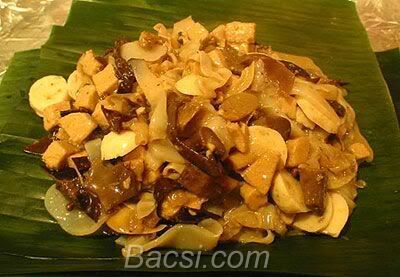 Để làm món giò xào, khi trời còn tối, mẹ tôi đã phải xách giỏ đi chợ. Lá chuối mẹ đã hơ và lau sạch từ tối hôm trước sắp gọn gàng trong cái nia.