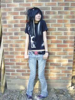 -Mặc áo ốm ,phai màu với những câu khẩu hiệu ( Slogan Im hardcore...Emo is Not Punk...I luv Emoboiz ..etc ) và quần jean ôm màu tối